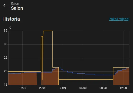 When a TRV doesn't offer manual mode, Aggressive calibration in Better Thermostat compensates effectively. The valve oscillates, the presets switch rapidly, the setpoint looks insane in the logs. But the room reaches and maintains the target temperature just as well.